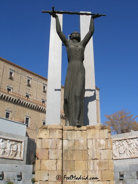Toledo. This monument was made by Juan de Ávalos in 1961 and is dedicated to the defenders of the Alcázar during the Spanish Civil War (1936-1939). Ávalos was also the author of the sculptures at the Valley of the Fallen in Madrid.